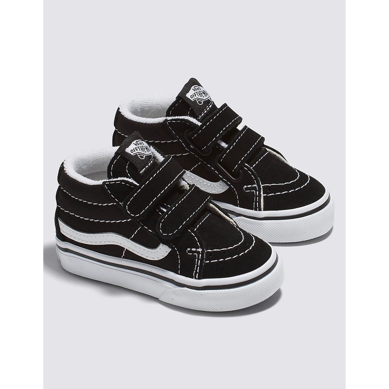 Inspired by the legendary Vans high-top, the Toddler Sk8-Mid Reissue V brings the best of both worlds together with a familiar Sk8-Hi aesthetic, classic mid-top silhouette, and hook-and-loop closures that provide a secure fit without the fuss. Just strap em on, and let your little one make the day their own.