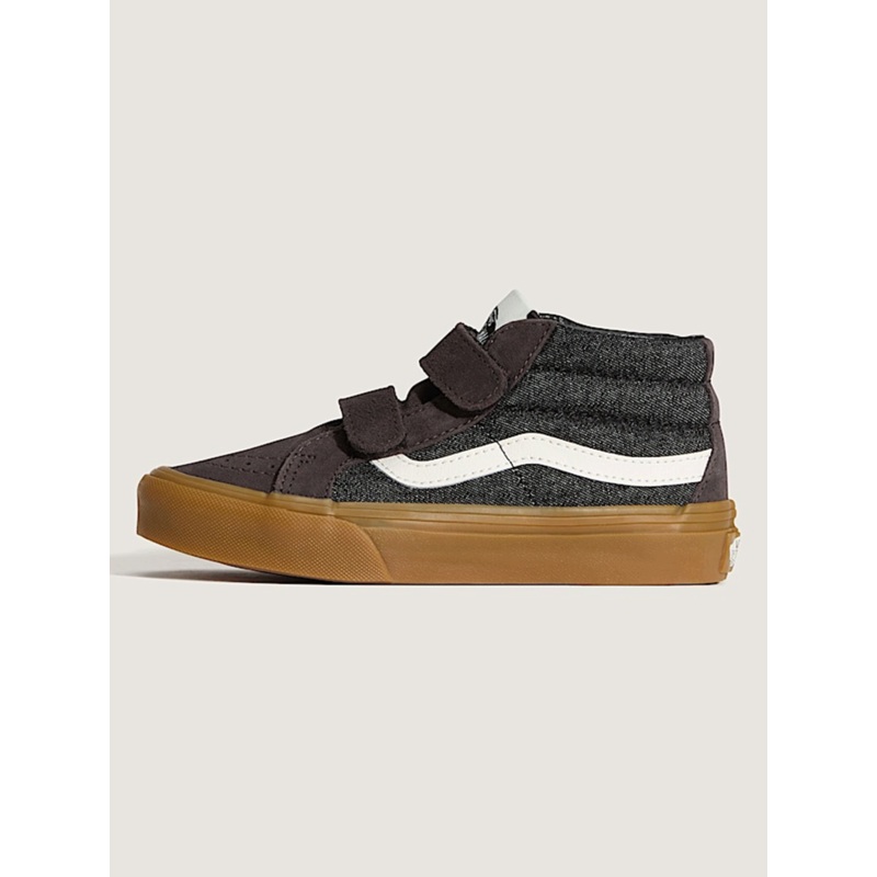 Inspired by the legendary Vans mid-top, the Kids’ Sk8-Mid V brings the best of both worlds together with a familiar Sk8-Hi aesthetic, classic mid-top silhouette, and velcro closures that provide a secure fit without the fuss. Strap em’ on and make the day your own.