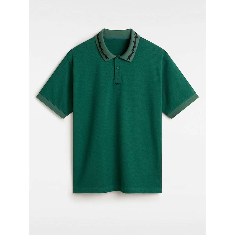 Let your inner preppie rage in the Skate Mesh Polo Shirt, a loose fit, short-sleeve mesh shirt with jacquard art of thorns circling the collar. It’s finished with 5-Checkerboard embroidery at the base of the buttons and a Vans skateboarding label package.