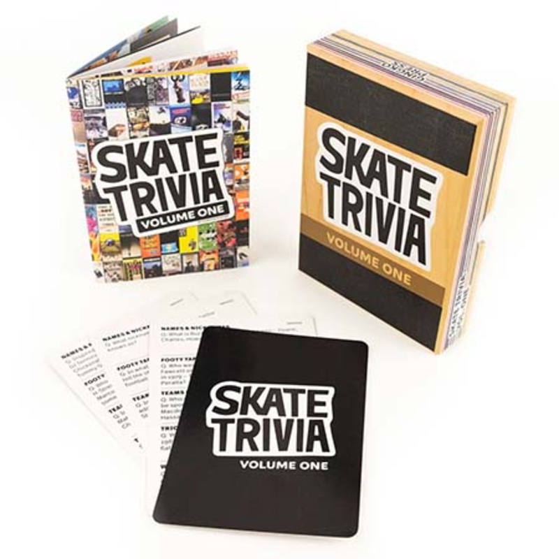 Gordon (Gordo) Eckler has been collecting and refining skate trivia questions for over 20 years. His questions have been checked, approved and vetted by a core group of skaters and industry veterans including Lance Mountain, Steve Caballero, Mark Whitely, Jim Thiebaud, Aaron Meza, Bryce Kanights, Ed Templeton and so many more. This set of 51 cards contains 250 questions ranging from fairly easy to devilishly hard. The trivia is drawn from 5 categories: Names & Nicknames, Footy Tape, Tricks of the Trade, Teams & Companies and Wild Card. Break em out for your next road trip, skate mission or game night! Hefty cards come in a chunky, nice-looking telescoping box with a booklet and sticker.