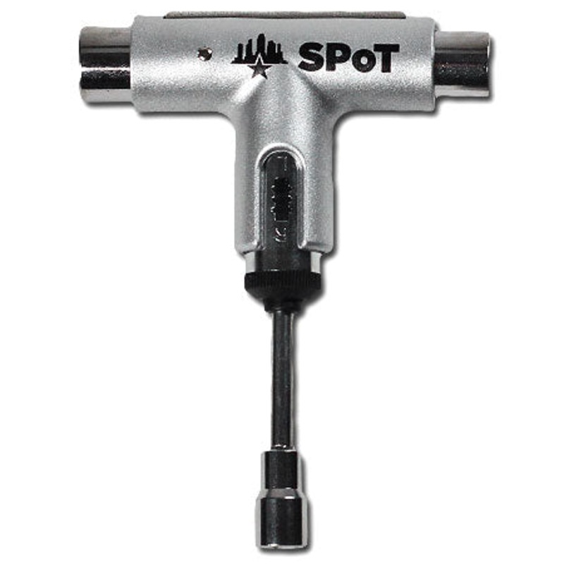The SPoT x Silver Premium Skate Tool is a high tech, precision engineered skate tool. Featuring a slide out screwdriver,a detachable allen key, a precision file, and an exclusive hardware ratchet, it’s got everything you need to service your board in one convenient package.