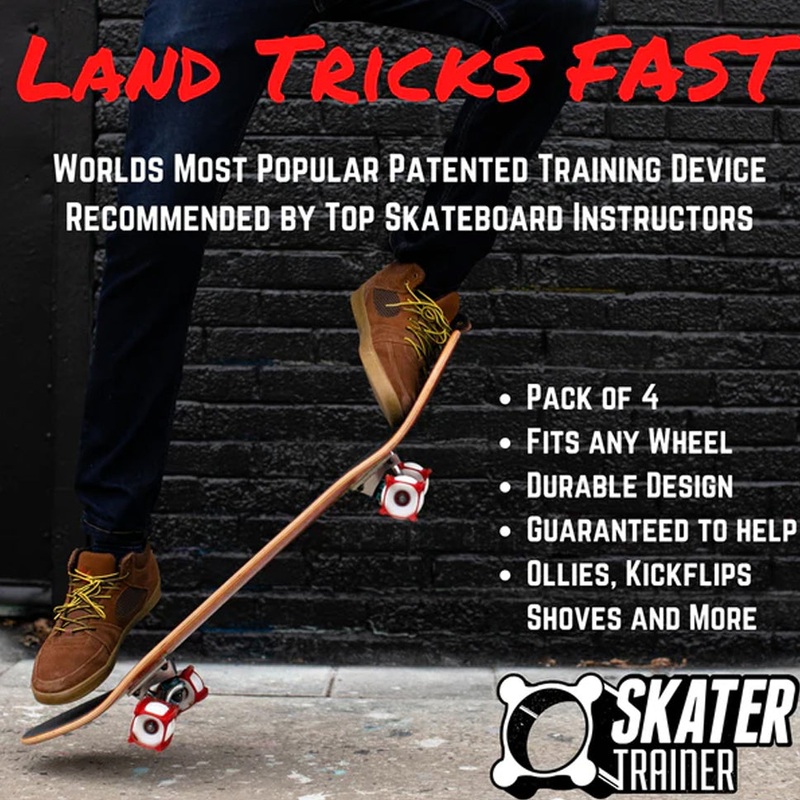 SkaterTrainer is one of those “why doesn’t this already exist” inventions because it solves the biggest problem new skaters have always faced….STOP THE WHEELS from rolling while you figure out the steps. Skateboard wheel trainers slow things down so you can learn the skateboarding trick faster, learn the muscle memory, and ultimately get the trick for real MUCH FASTER. The CONFIDENCE boost you get from stabilizing the board makes it so much easier to learn the trick faster.