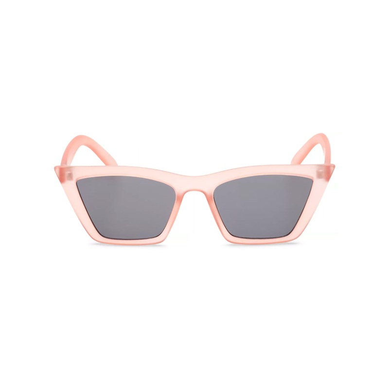 The Skippin Out Sunglasses are 100% polycarbonate angular cat eye sunglasses with a frosted translucent body and tinted lenses.