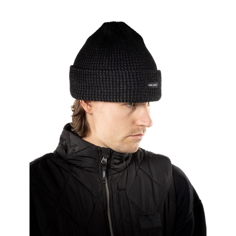Acrylic cuff beanie in comfortable rib knit, with HOWL woven label.