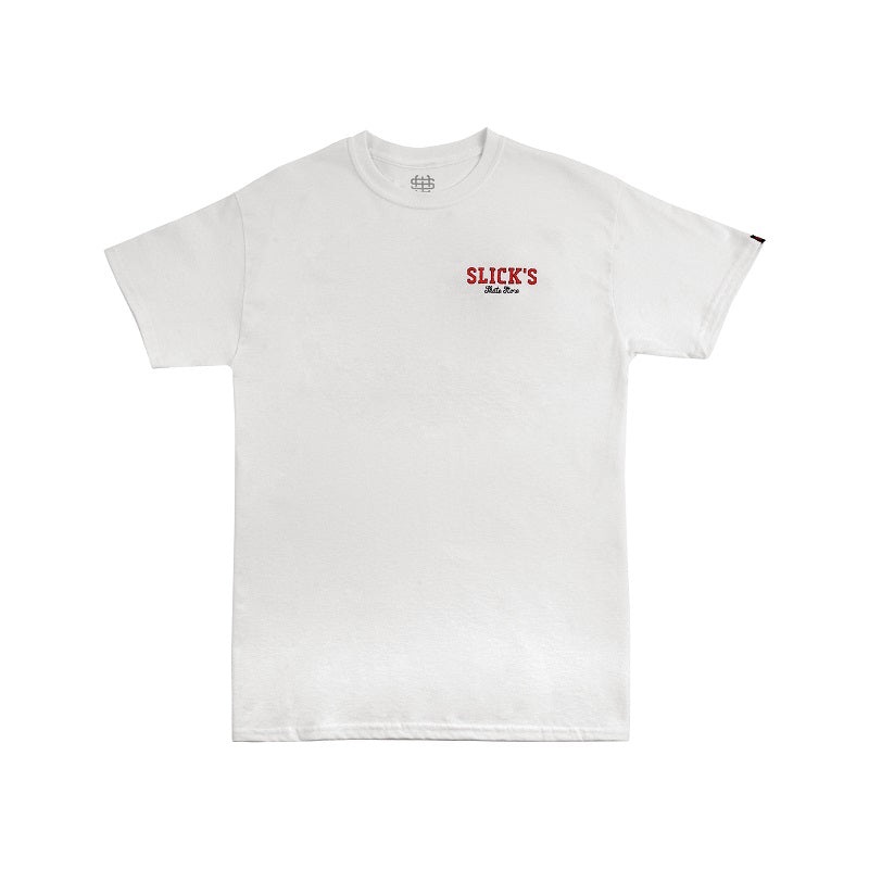 The Slick OG Monogram T-Shirt in White introduces the new face of the shop, “Slick Willie” himself. This premium T features a large full colour back print.