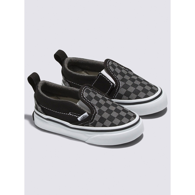 The Toddler Slip-On V Checkerboard remakes our Classic Slip-On with little ones in mind. By adding side hook-and-loop closures and heel pulls to this iconic style, an everyday essential is given a better fit for small feet, and has even easier on-and-off access, too.