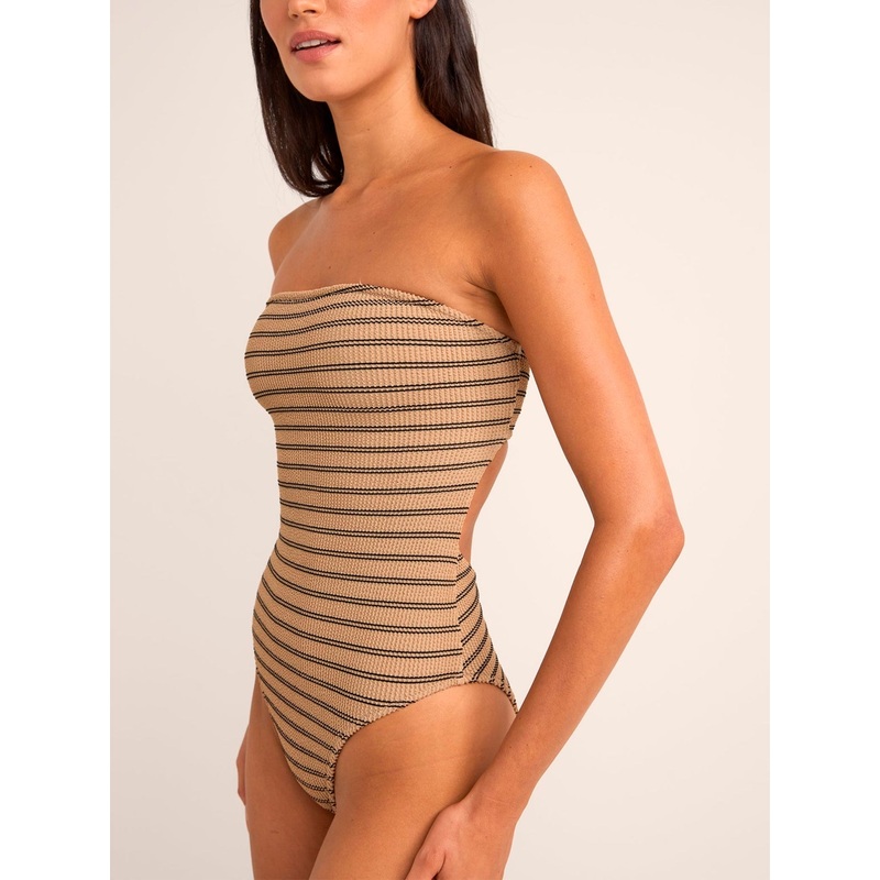 Experience the freedom of the Sol Stripe Strapless One Piece in Black. This elegantly simple one-piece features a strapless design with an internal silicone edge for secure wear, allowing for unimpeded movement and a flawless tan. The high cut leg and low scooped back offer a contemporary look that’s as suitable for poolside lounging as it is for beachside gatherings.