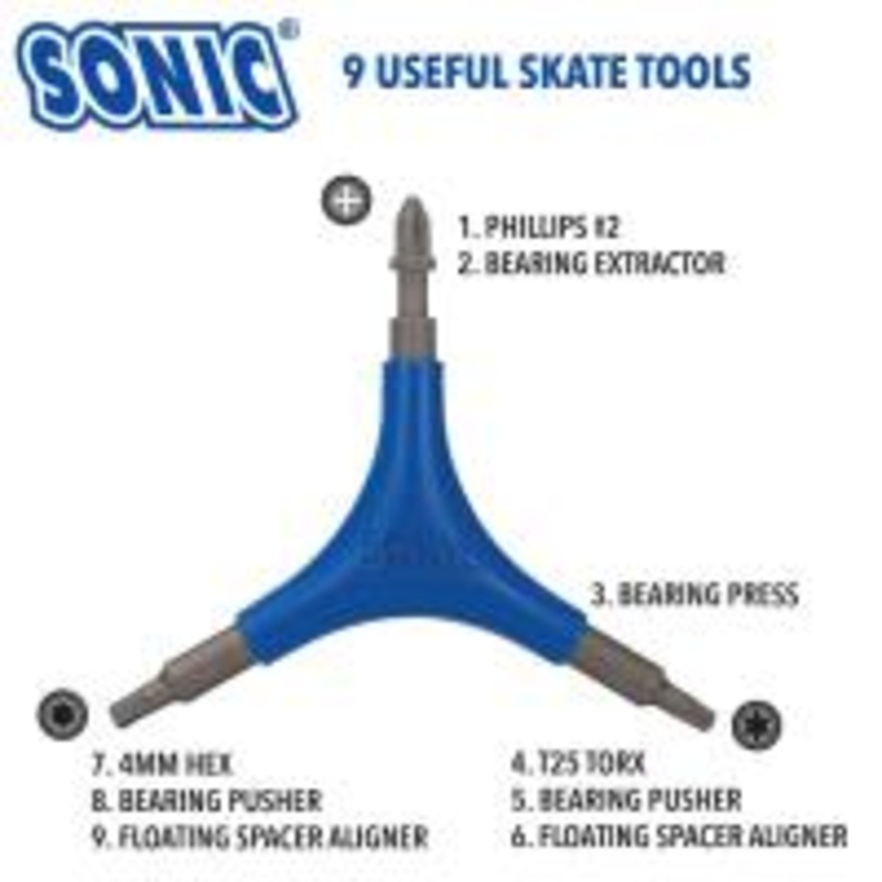 This is the Sonic Pro Tool in Blue. Sonic produce some of the best inline skate tools on this planet and will help to look after and maintain your skates. Quality materials mean less rounded bolts too and we all hate them. See what Sonic have to say below.