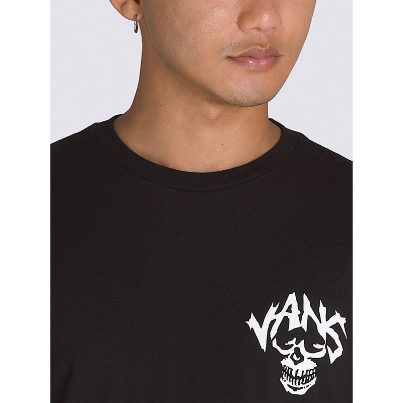 The Skull Reaper Spirit World T-Shirt is a classic fit short sleeve crew neck T-shirt with a screenprinted graphic of the Vans logo on the left chest, and the grim reaper with a cold one on the back.