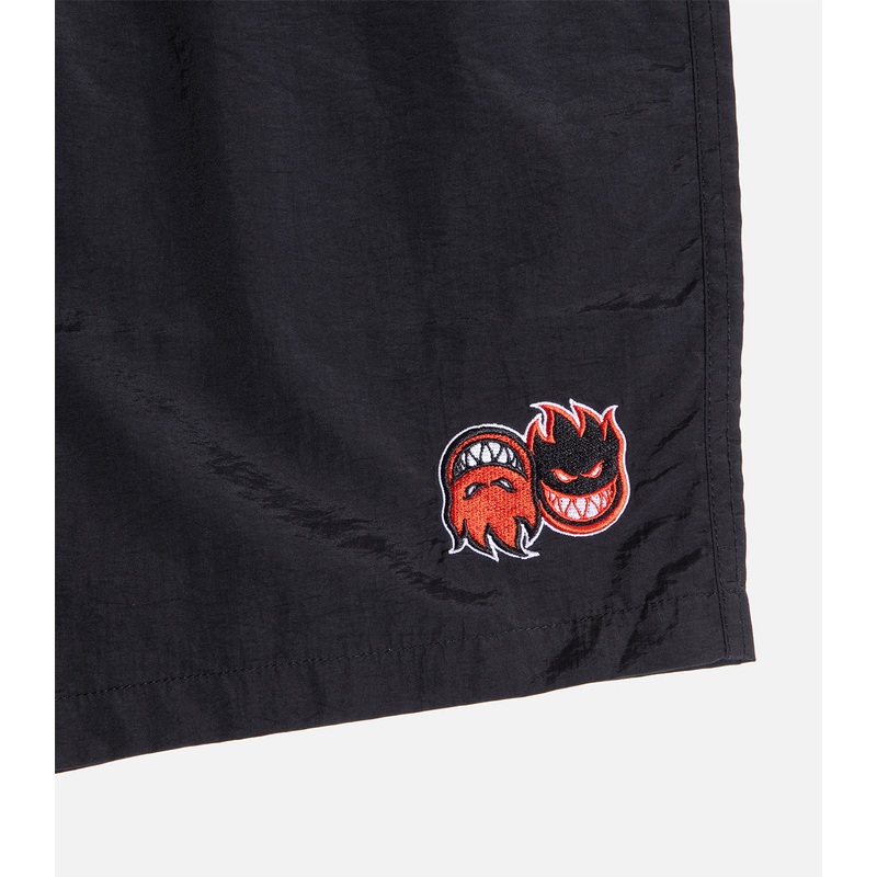 Lightweight shorts with an elastic waistband, built in waist draw and and embroidered graphic.