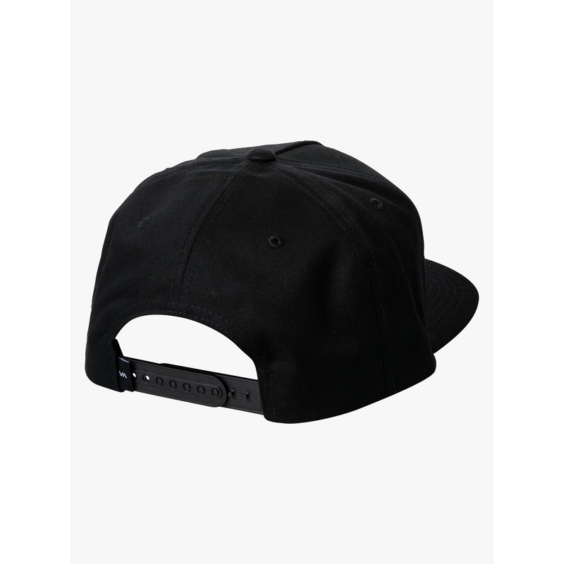 A logo essential defined by clean, minimalist lines, the rvca square snapback hat updates a solid 5 panel hat with a woven va/rvca patch at the structured front panel. The flat-billed men’s hat adjusts to fit with a snap back closure.