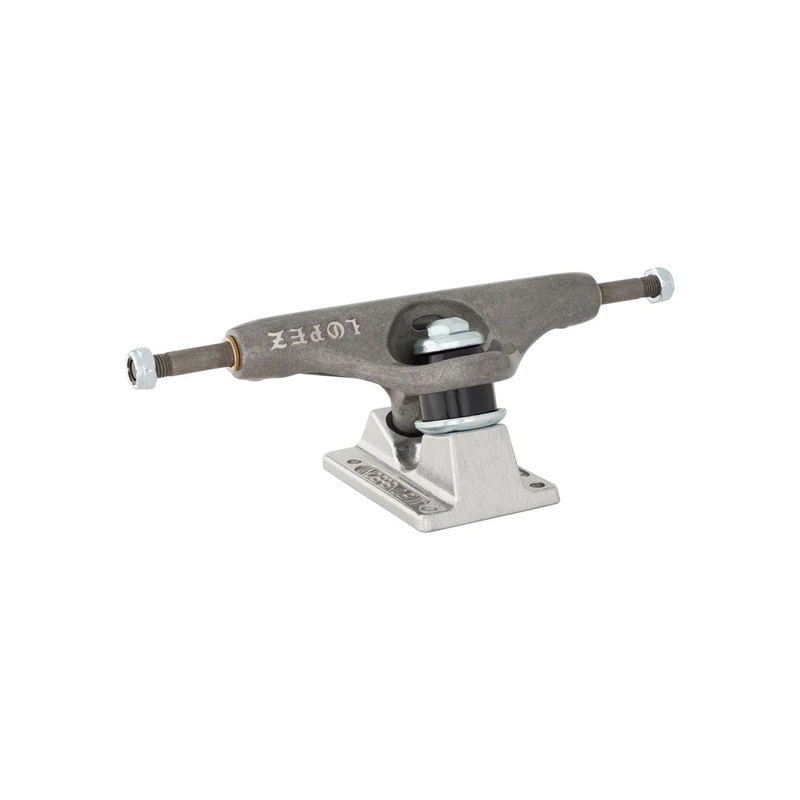 Independent Trucks Louie Lopez Pro Stage 11 IKP is Indy’s first inverted kingpin standard height truck featuring clear trans black powder coated hanger with lazer etched Louie graphic art, polished silver baseplate, black cushions, and silver hardware
