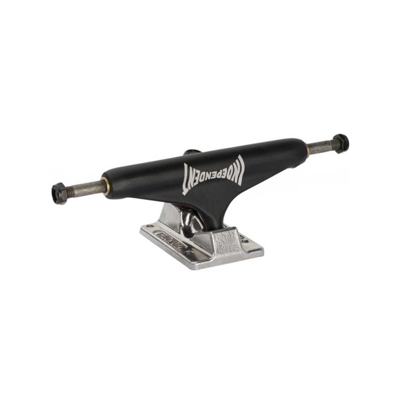 Independent Trucks Mason Silva Pro with laser engraved flat black hanger and silver baseplate. Durable all purpose truck for any type of skateboarding. 55mm tall 356 Aluminum Hanger & Baseplate Solid 4140 Chromoly Steel Axle Grade 8 Kingpin