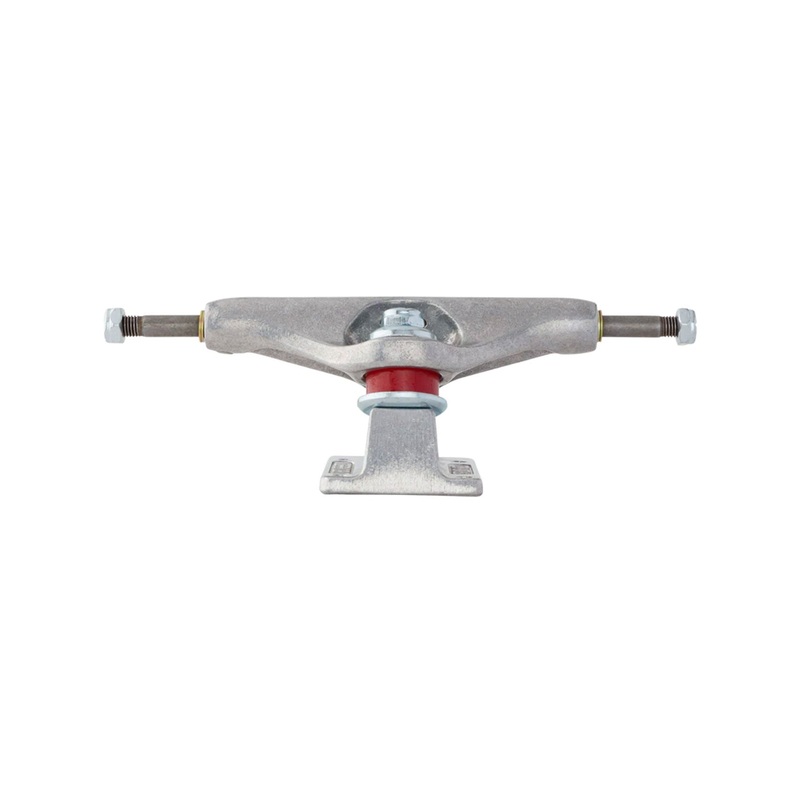 Limited Edition Independent Trucks x Toy Machine Stage 11 Standard trucks featuring polished silver hanger and baseplate with Toy Machine pad print, red cushions, and silver hardware.