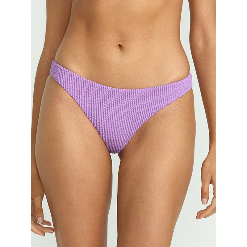 Step up your swimwear game with our Summer High Tanga Bikini Bottom in Paradise Purplefeaturing a skimpy, high-cut design. Tie closures ensure a custom fit while the minimalist aesthetic and partially recycled fabric exude sun-ready style.