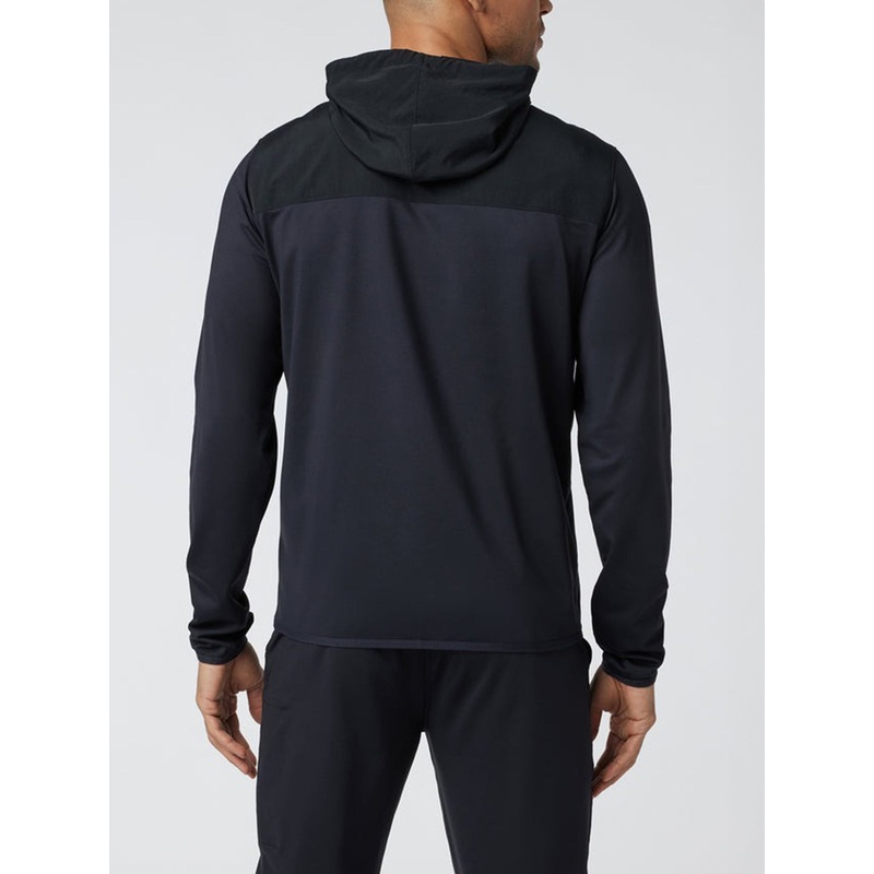This jacket checks the boxes for both soft performance stretch knit plus protective nylon, making it perfect for comfortable outdoor wear. Moisture-wicking fabric along with nylon overlays, a drawcord hoodie, and zip pockets keep you in check. Great for training and running