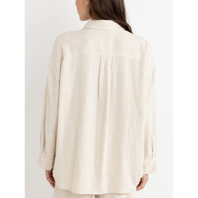 The Sunray Oversized Long Sleeve Shirt in Oat offers a relaxed, oversized fit with a pleat at the back. Its button-front opening and cuff placket provide structure to this casual piece.