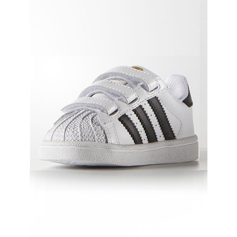 Inspired by the iconic ’70s basketball shoe, the adidas Originals Superstar Foundation shoe downsizes the classic just for little ones. These infants’ shoes have a rubber shell toe, a leather upper and easy strap closures.