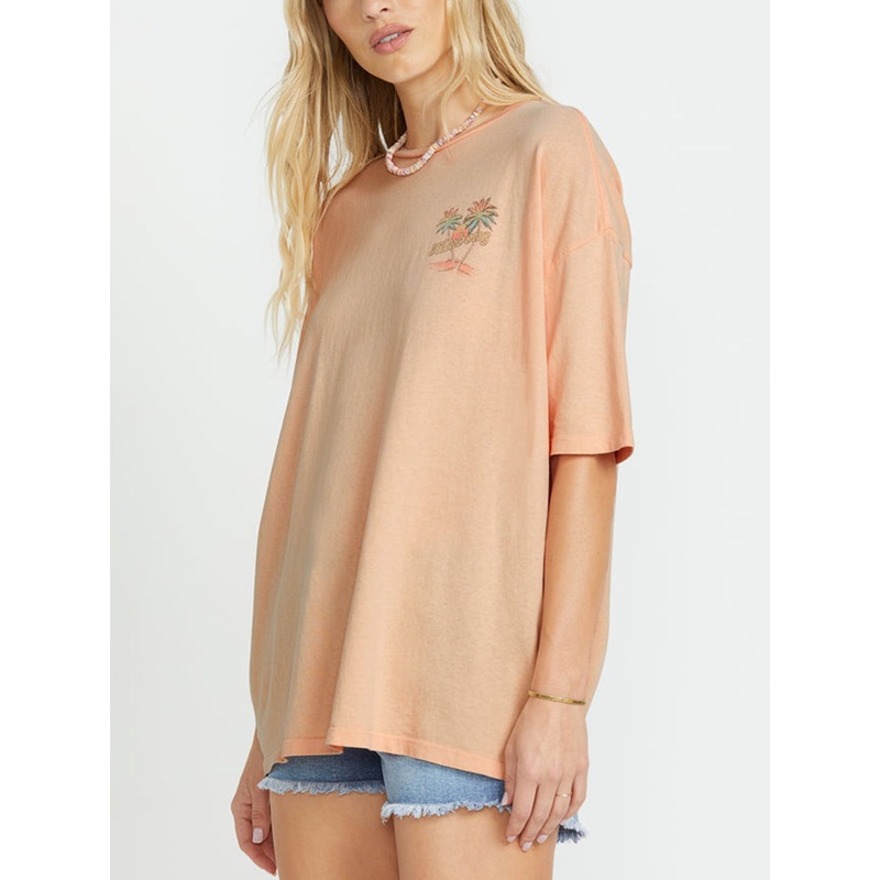 Slip into laid-back style with our oversized true boy tee. Crafted from pigment-dyed 100% cotton jersey, it has a slouchy, sun-faded look and feel of a beloved vintage tee. The loose knit crew neck nails casual everyday comfort. Featured here in the Soft Peach colorway.