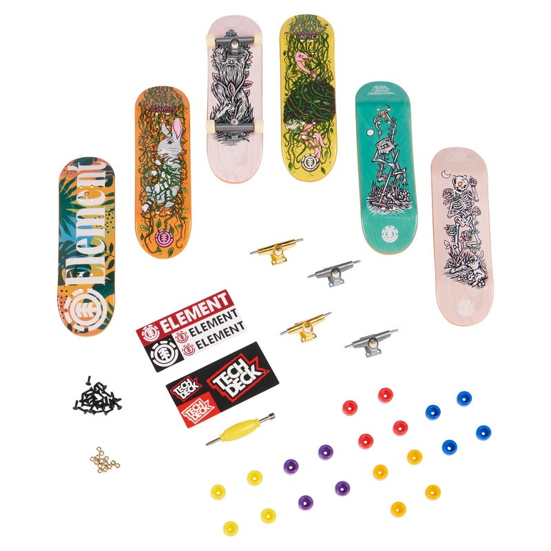 Tech Deck brings you the real deal with authentic fingerboards from real skate companies! Each one features legit graphics from the biggest skate companies in the world, including Blind, Baker, Primitive, Element, Finesse, The Heart Supply, DISORDER, Santa Cruz, Plan B, Sk8mafia and Toy Machine. This Sk8shop Bonus Pack includes everything you need to build 3 custom boards, with extra boards, wheels, stickers and tools to customize any way you like. There are a ton of Decks to collect! If you want real skate graphics from real skate companies, then its got to be Tech Deck collect the deck!
