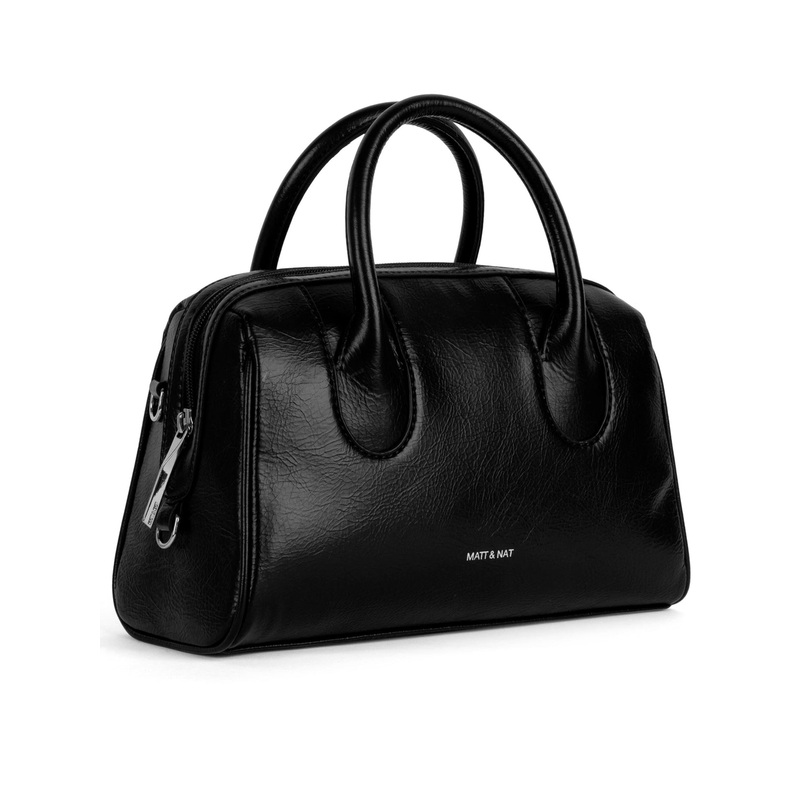 Satchel with zipper closure handles to hand-carry and a detachable and adjustable soft crossbody strap.