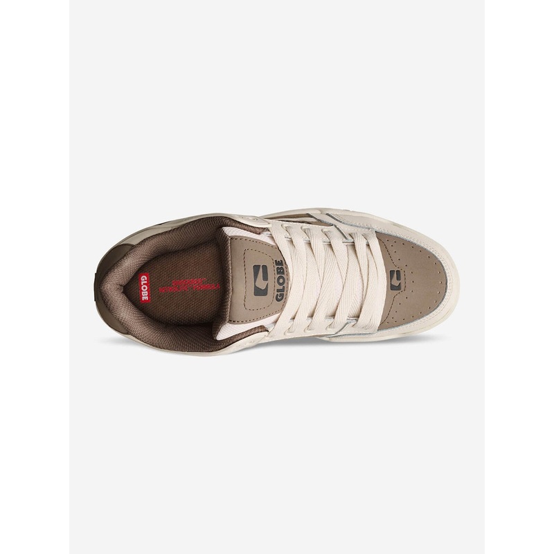 The Tilt in Parchment Globes classic heritage skate silhouette featuring a moulded TPR outside collar for support and durability, and S-Trac sole pattern for enhanced grip and board feel.