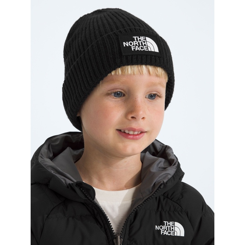 TNF Logo Box Cuffed Beanie for kids by The North Face.