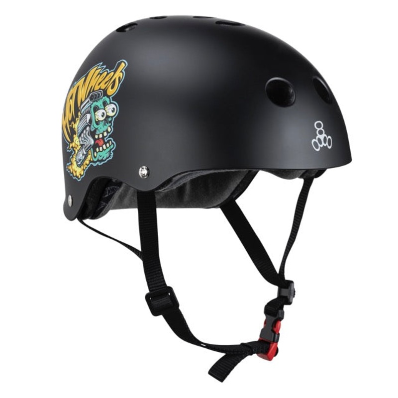 This is the Triple 8 Sweatsaver Helmet Hot Wheels Special Edition, featuring a custom Hot Wheels graphic on the side, a special collaboration logo on the back and a printed liner to tie it all together. The sweatsaver is the first and only helmet to integrate high impact absorbing EPS Foam with thick dual density soft foam and Sweatsaver fabric. This makes it one of the most comfortable helmets you can use as it works to get rid of sweat as you skate.