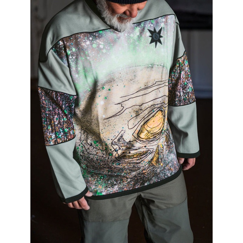 Bryan Iguchi, the legendary snowboarder, partnered with our Volcom design team to bring you the Tokyo True collaboration, blending his Japanese heritage and global cult following into a project that resonates universally. This knit long sleeve delivers truly unique style. The 100% polyester mesh fabric offers a loose, breathable fit, while the allover print and hockey-style neck add a sporty, streetwear-inspired look.