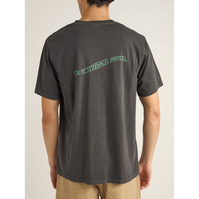For free spirits that live for music, the Universal Sound Vintage SS T-Shirt in Vintage Black is a perfect choice. Crafted from 100% organic cotton jersey, it features a rib knit neck band and custom Rhythm screen print artwork. Washed and dyed for a vintage hand feel, this tee is perfect for those who live for lifes more vibrant sounds.