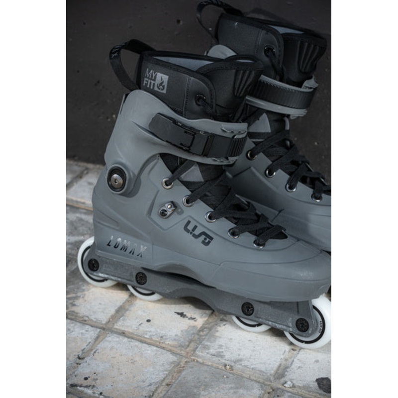 These are the latest edition of USD Aeon 60 Lomax Pro Aggressive Skates and the 2021 release comes in a new clean grey colourway. The latest incarnation includes some neat upgrades over the green model most notably the new adjustable and cut out Aeon cuff. Also gone is the mid strap which has been replaced by an extra lace eyelet.