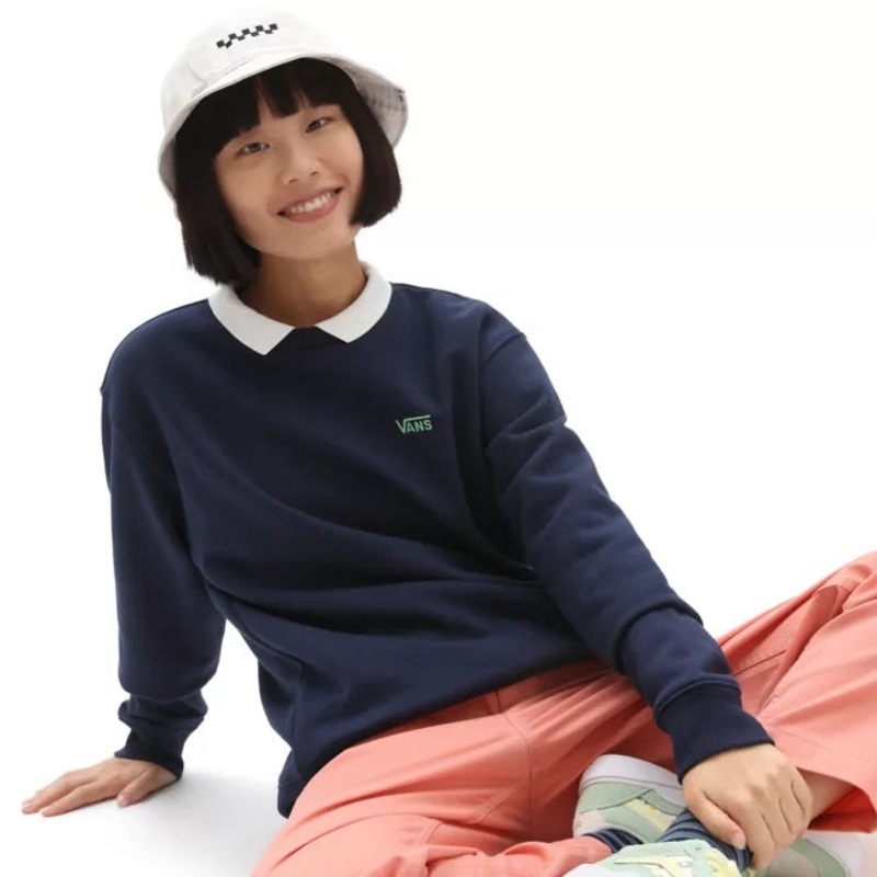 This is the Vans Brighton Polo Crew in Blue. Channelling her distinct taste and personal style, the Brighton Polo Crew Sweatshirt is made with 60% cotton and 40% polyester.