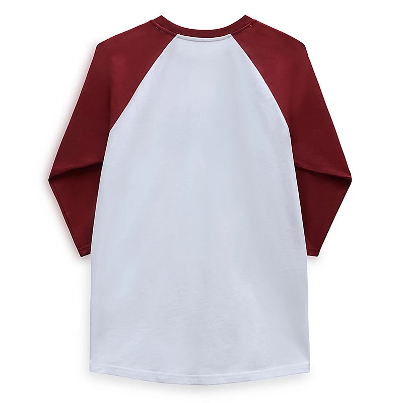 The Vans Classic Raglan Long Sleeve T-Shirt has a crew neck and 3/4 length sleeves with contrast colours. It also has the Vans logo on the front.