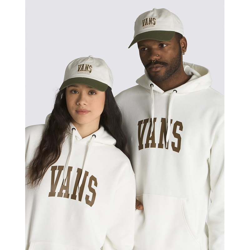 The Campus Cap is a cotton baseball cap with a curved, contrast bill for a worn-in look and features a varsity inspired Vans logo embroidery.