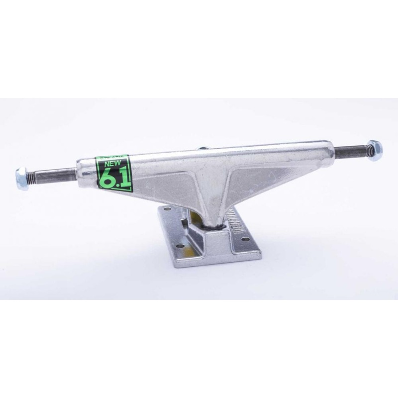 Pair of Venture All Polished Skateboard Trucks in 6.1 to fit decks with a width of between 8.6 and 9 inches. These Ventures are super clean and simple with no nonsense plain silver finish all round and purple bushings.