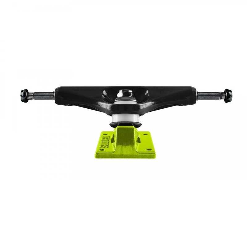 Pair of Venture Arcade Low Skateboard Trucks in Black and Lime measuring 5.0″ wide. Solid kingpin and axle for strength and durability.