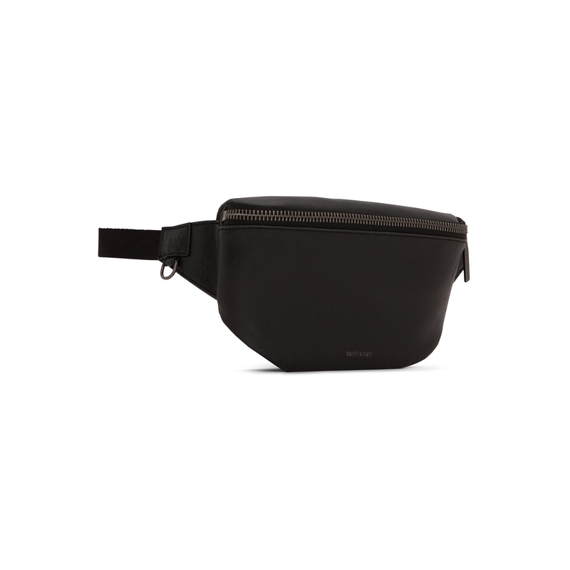 Fanny pack waist pack with metal zipper main opening and buckle belt attachment for comfortable wear around waist. D-ring hardware attachment with logo embossed detail.