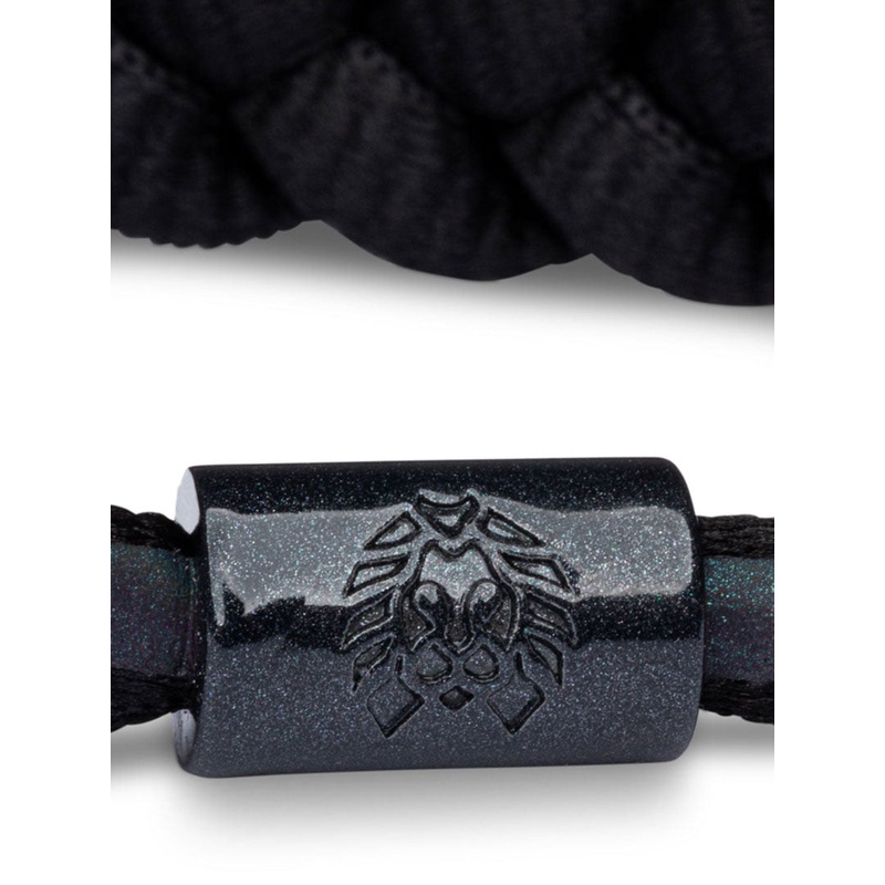 The Void – Medium/Large black braided bracelet features an iridescent strip with reflective technology complemented with tonal hardware and contrast emblems.