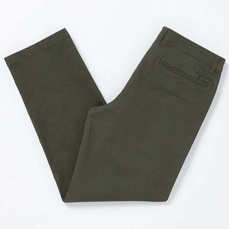 Celebrate one of Volcom’s greatest transition skater, Grant Taylor, by skating a mile in his pants. An ideal pick for when you want to keep your look clean while griding the coping. A chino styled pant with vintage features like a fold back hollywood waistband, front slash hand pockets and coin pocket.