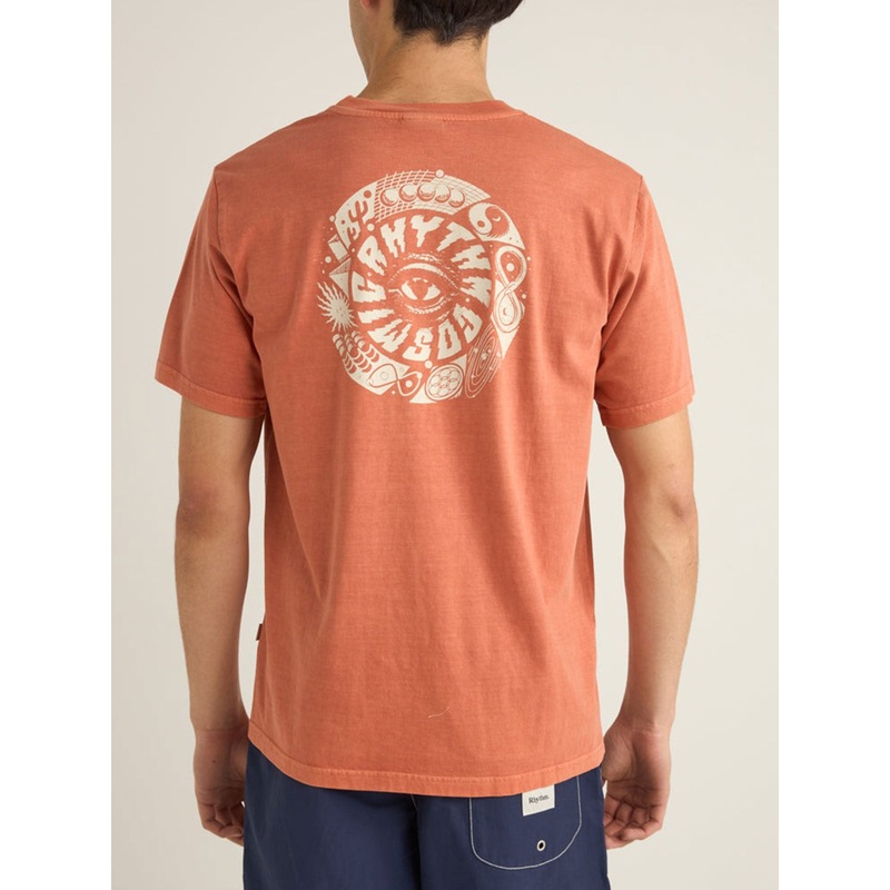 Add all-seeing style to your collection with the Vortex Vintage SS T-Shirt in Rust. Crafted from 100% organic cotton jersey, it includes a rib knit neck band and custom screen print artwork. Washed and dyed for a vintage hand feel, this tee is perfect for those who seek inspiration in every journey, blending comfort with true creativity.
