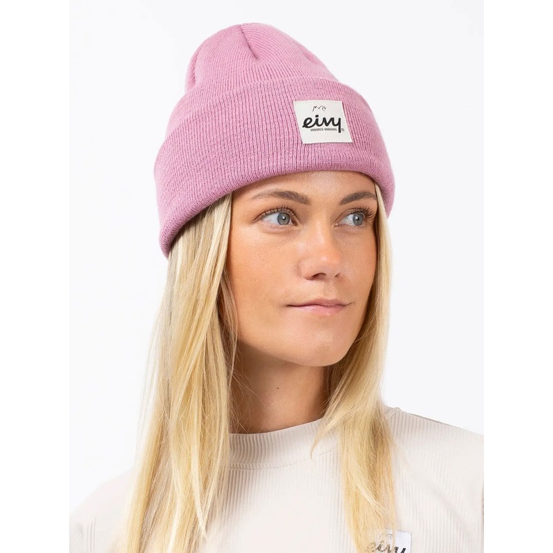 Mid tall pink beanie with a woven patch in the front made of thick and soft fabric. The circular knitting results in no side seam for ulitmate comfort.