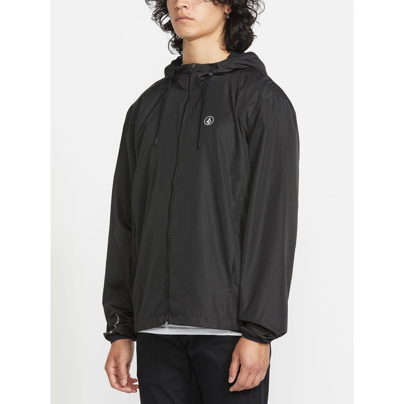 A sporty, water-resistant polyester blend jacket with a DWR finish, relaxed fit, and adjustable hood. Branded Volcom design with zip front, hand pockets, and elastic details.